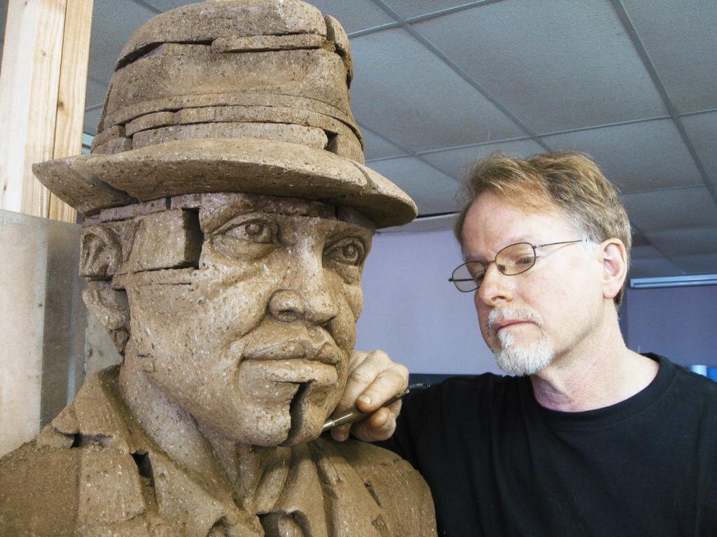 Самый известный современный автор скульптур из кирпича - Брэд Спенсер. Он живёт и работает в Северной Каролине. Основными ценителями его творчества являются жители его городка, в которых эти произведения искусства выставлены под открытым небом. В предыдущей статье многие сомневались, кирпич ли это, кладка ли это - я выяснила - да! Создание скульптур художник начал с 1984 года. Он придумал собственную технологию. Подбирает необожжённый кирпич нужных цветов и оттенков и в мастерской собирает скульптуру, обтачивая кирпичи. Затем разбирает её и обжигает кирпичи. Затем везёт все материалы на то место, где будет стоять скульптура и там собирает её, скрепляя материал цементом. В этой статье мы хотим рассмотреть несколько его скульптур, историю их создания, интересные факты. Одна из самых известных и значимых - "Жизнь, как открытая книга". Скульптор, посредством детворы, которая карабкается на стену, представляющую собой обложку, хочет сказать, что познание жизни происходит через книгу. П