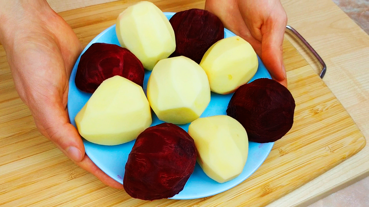 Данный рецепт я принимаю во внимание уже давным-давно , и наша семейство полюбила это кушанье с 1 ложки. К что же ещё и полезно! А для тех, кто соблюдает Пост, станет довольно кстати — разнообразите свое рационы . Свёклу и картофель надо почистить от кожицы . Картофель разрезаю напополам и нарезаю на эти куски : Свёклу тоже разрезаю пополам и нарезаю на такие же кусочки, как и картофель. Можно потоньше. Вот такие кусочки свеклы и картошки получились: Картофель и свёклу я буду запе