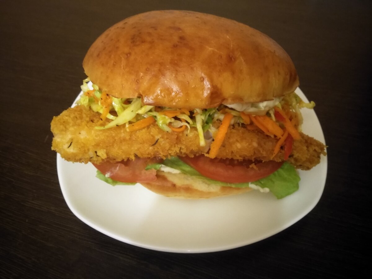 Очень вкусные бургеры с жаренной рыбой, соусом тар-тар и салатом из капусты. На 3 бургера 3 булочки для бургеров 450 гр. филе белой рыбы (треска, камбала, дори) 70 гр. панировочных сухарей 0,5 ч.л. черного перца 1 ч.л. лукового порошка 1 ч.л. паприки 0,5 ч.л. сушенного тимьяна 0,5 ч.л. кайенского перца 0,5 ч.л. чесночного порошка мука 2 яйца Салат из капусты: 150 гр. капусты 1 маленькая морковь 2 пера зеленого лука 0,5 перец чили (семена вынуть) 2 ст.л. оливкового масла 1,5 ст.л. яблочного уксуса 0,75 ч.л. соли 0,75 ч.л. черного перца 0,75 ч.л. сахара Соус тар-тар: 150 гр. майонеза 45 гр. маринованных огурцов 1 ст.л. каперсов 3 пера зеленого лука 1,75 ст.л. яблочного уксуса 1 ч.л. сушенного укропа щепотка соли 0,5 ч.л. черного перца 1 ст.л. лимонного сока салат айсберг помидоры Сначала соус. Соус очень простой и много времени не займет. Огурцы, каперсы, лук мелко нарезаем. Добавляем остальные ингредиенты. Перемешиваем, убираем в холодильник. Следом за соусом делаем салат из капуст