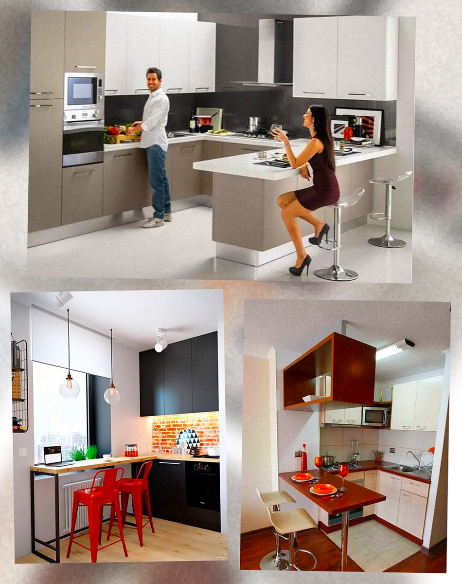 - Стойка у стены, удобная для обустройства компактных кухонь - экономия пространства плюс комфортное место для быстрого перекуса.