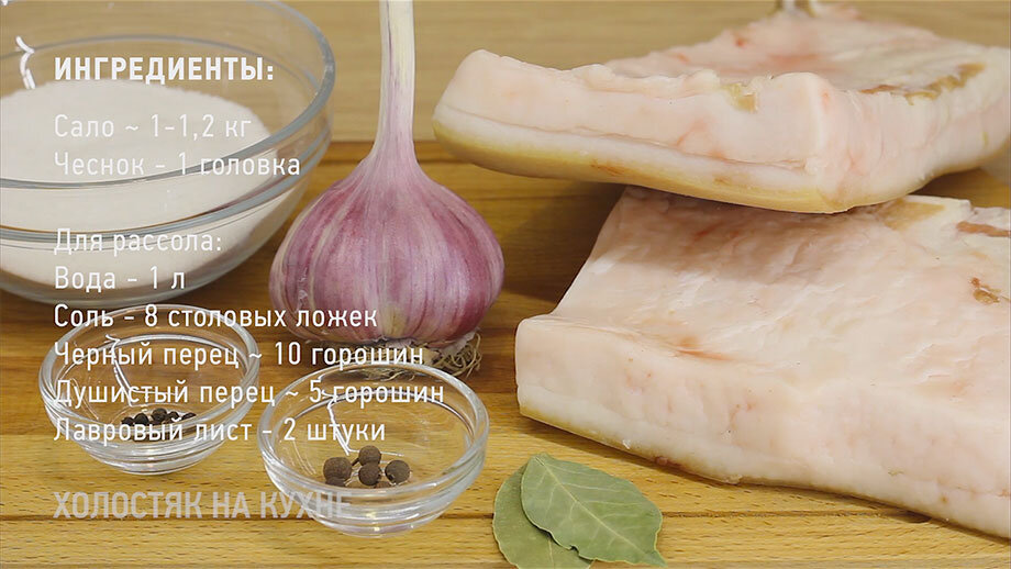 Сегодня будем солить сало в рассоле. На мой взгляд, такое сало получается мягче и ароматней, чем приготовленное сухим способом. Если я не прав, поправьте в комментариях. У меня есть два куска примерно по 500 грамм, по этому вполне хватит двухлитровой банки. Соответственно, количество всех продуктов рассчитано на данный объем. Ингредиенты Для рассола: Приготовление рассола Наливаем в кастрюлю литр воды, доводим до кипения, добавляем соль, перец, лавровый лист и все тщательно перемешиваем. Кипятим пару минут до полного растворения соли. Готовый рассол отставляем в сторону — охлаждаться. Чтобы ускорить процесс, кастрюлю ставим в раковину, залитую холодной водой. Засолка сала Тем временем сало тщательно промываем, зачищаем шкурку от грязи и копоти и нарезаем на прямоугольные бруски. Шириной 4-5 сантиметров. Зубчики чеснока очищаем от шелухи и нарезаем на тонкие ломтики. В хорошо промытую банку добавляем половину чеснока и плотно укладываем сало. Сверху засыпаем остатками чеснока и заливаем