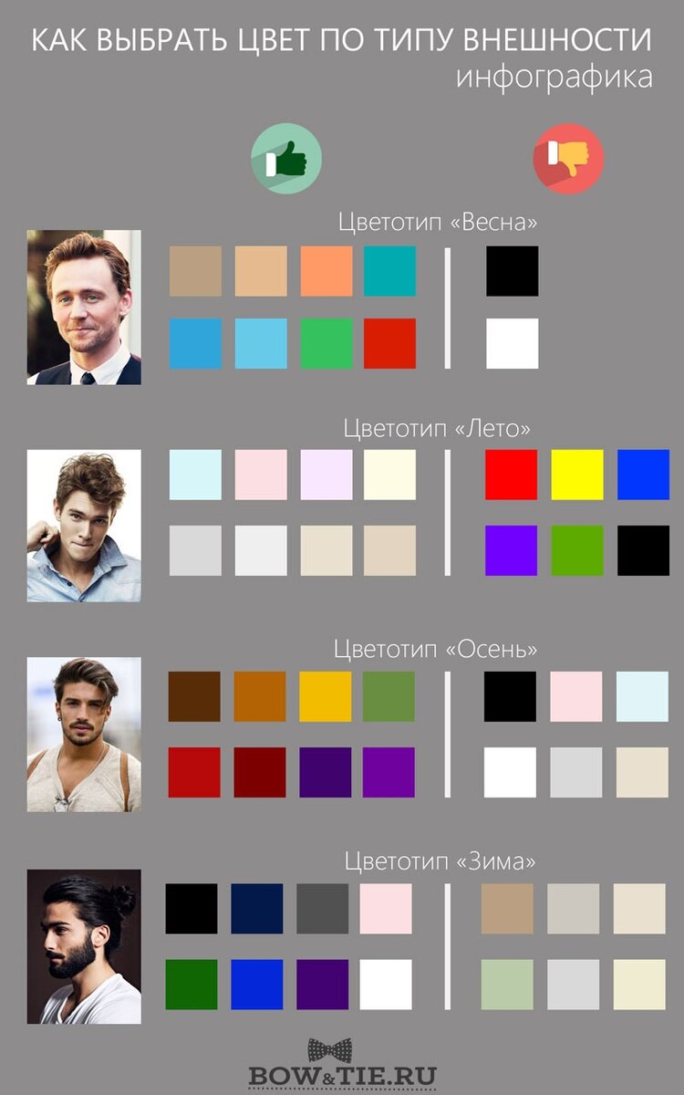Для представления сочетаний цветов и цветотипов, посмотрите инфографику.