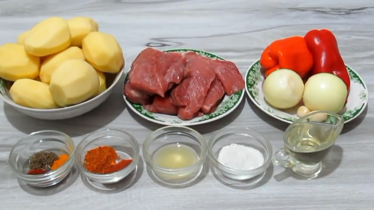 Всем привет! Сегодня мы приготовим чудесный картофель с мясом. Часто готовлю его для воскресного обеда, иногда к какому-нибудь празднику. Рецепт простой, ингредиенты самые обычные, но получается очень вкусно. Ингредиенты: Начинаем готовить Нарезаем мясо Далее лук И чеснок Кладём всё в одну ёмкость Добавляем приправу к мясу, куркуму, лимонный сок, соль, растительное масло Всё тщательно перемешиваем и оставляем на 15 минут Нарезаем картофель После этого перец Кладём в одну ёмкость Добавляем паприку, куркуму, сушёный укроп, соль, растительное масло Тщательно перемешиваем Кладём всё в пакет для запекания И поверх укладываем мясо Завязываем пакет Делаем несколько отверстий зубочисткой Кладём на противень и ставим в духовку, разогретую до 200 градусов, на 60 минут После этого достаём из духовки И проверяем результат Всё готово Приятного аппетита! Уважаемые читатели, если вам понравился данный рецепт поддержите "пальцем верх", оставьте комментарий и расскажите о нас вашим друзьям и