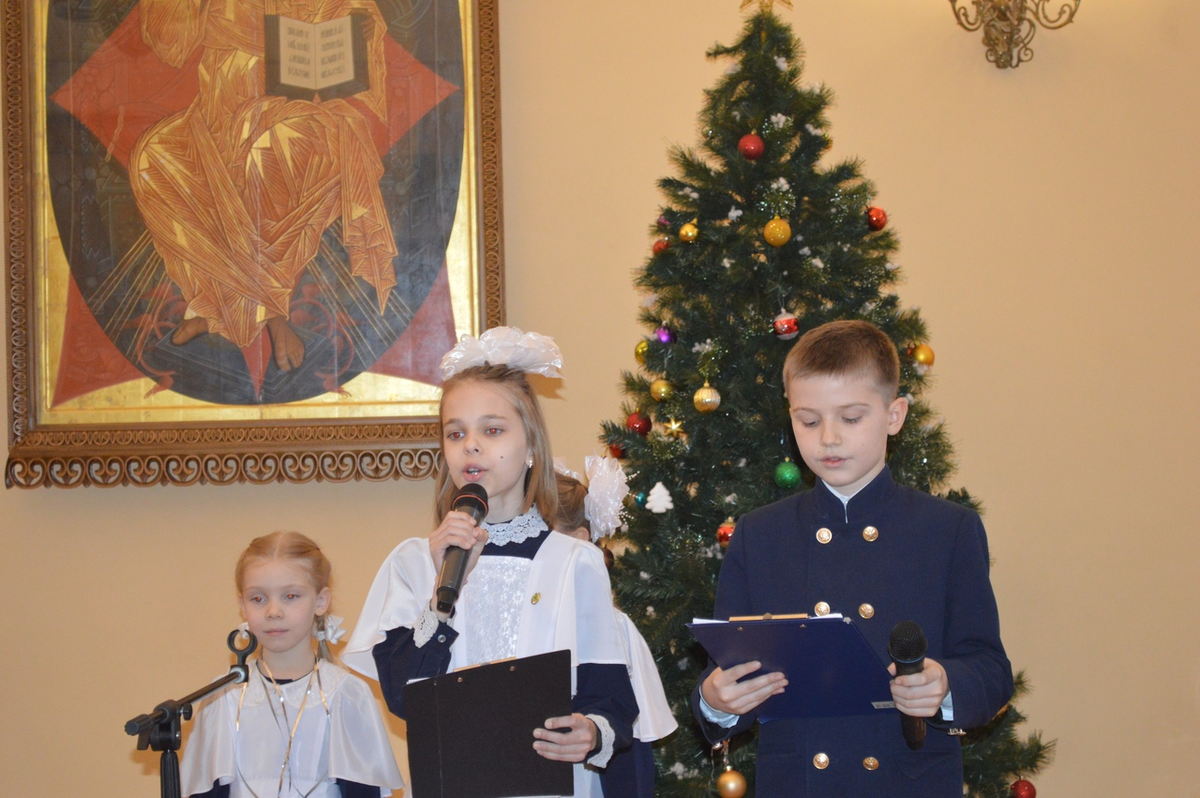 Традиционный рождественский предновогодний праздник начальной школы состоялся в актовом зале гимназии 24 декабря. Каждый 1,2,3 класс приготовил свое выступление. Директор Православной классической гимназии обратился к ребятам с напутственным словом: Мы с вами уже отметили день святого Николая Чудотворца, а значит ворота в Рождество уже распахнулись. В храме поются рождественские песнопения - «Христос Рождается, — славите, Христос с небес, — встречайте!» Рождается наш Спаситель, Господь Иисус Христос, рождается Новый год и приносят нам радость и надежду. Сегодня мы собрались с вами, чтобы прославить эти святые дни, поделиться радостью, потому что разделенная радость — это двойная, преумноженная радость. Звучали стихи о Рождестве, исполнялись рождественские и новогодние песнопения. Зрители тепло поддерживали выступающих аплодисментами, совместным пением "Рождество Христово", "Мы маленькие свечки", "В лесу родилась елочка". Известная новогодняя песенка о маленькой елочке прозвучала в это