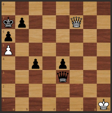 Предлагаю найти ничью в следующей позиции. Фрагмент партии Пильник - Решевский, 1942 год. Черный король скрыт от шахов белого ферзя. Пешки черных идут в ферзя и их не остановить. Однако ход белых ничья. Подпишитесь на канал и будут новые интересные задачи Решение идет далее 1. Белые идут - Ферзь на f2. При взятии белого ферзя пат, ничья. Подпишитесь на канал и будут новые интересные задачи хитрый выигрыш увидит не каждый тут>>> Янса хитро выиграл тут>>> Хитрый выигрыш тут>>> конь сильнее слона тут>>
