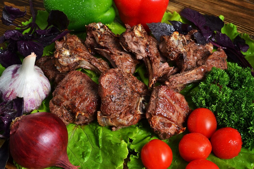 Филе баранины (рекомендуем брать корейку) нарезать на кусочки примерно по 30 - 35 г., положить в глиняную посуду, добавить соль, черный и красный молотый перец, перемешать с тертым луком, измельченным чесноком. Все полить соком лимона, поставить в прохладное место на 6 - 8 часов. Затем кусочки мяса нанизать на шампуры и жарить на углях до готовности, периодически поворачивая шампуры вокруг своей оси и сбрызгивая смесью воды и сока, выделившегося при мариновании мяса (так получится сочнее). К шашлыку подать много зелени - петрушки, базилика, кинзы, эстрагона, зеленого лука.