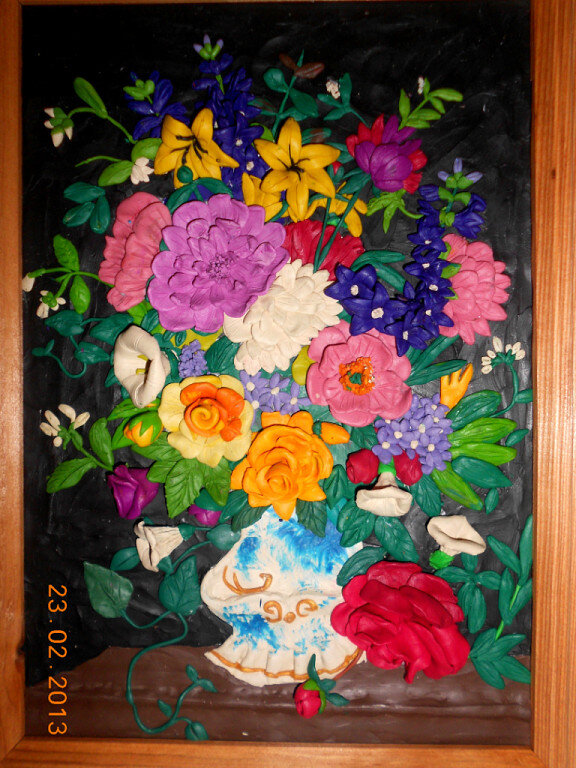 Пластилинография - один из моих любимых видов творчества. Материалы дешевые, а получается красиво, да и слепить такое творение под силу любому, проверено. Техника совершенно не сложная и, для того, чтобы создать картину, вовсе не обязательно уметь рисовать. Я вот - не умею. Для работы вам понадобится: Особенности работы с пластилином Какой выбрать пластилин, вы поймете в процессе работы, он должен быть пластичным, естественных не кислотных оттенков. Самый обычный, каким в детстве лепили. Чтобы добиться большего спектра цветов, пластилин можно смешивать, тщательно разминая в руках. Чтобы легче было работать, его можно немного разогреть, положив на батарею, или в емкость, которую поставить в горячую воду. При смешивании тратиться очень много белого цвета, поэтому если есть возможность - приобретите его отдельно. У меня такой возможности не было и дома скапливалось огромное количество коробок, в которых были все цвета, кроме белого. Дополнительные материалы Сито и пресс для чеснока при