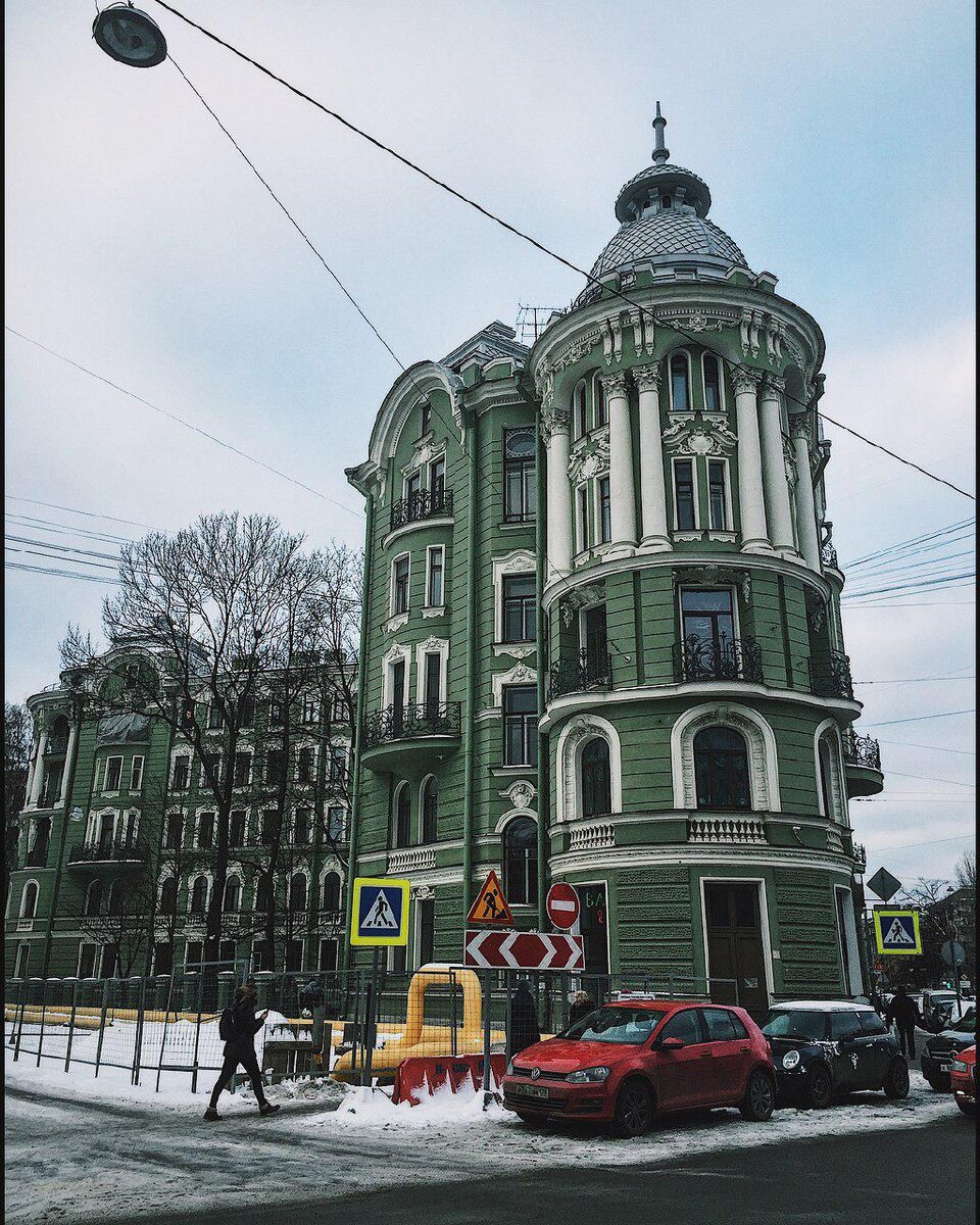 Помпезный дом в необарочном стиле сразу становится видной достопримечательностью Петроградской стороны — в 1912 году он даже был отмечен дипломом на конкурсе городских фасадов.