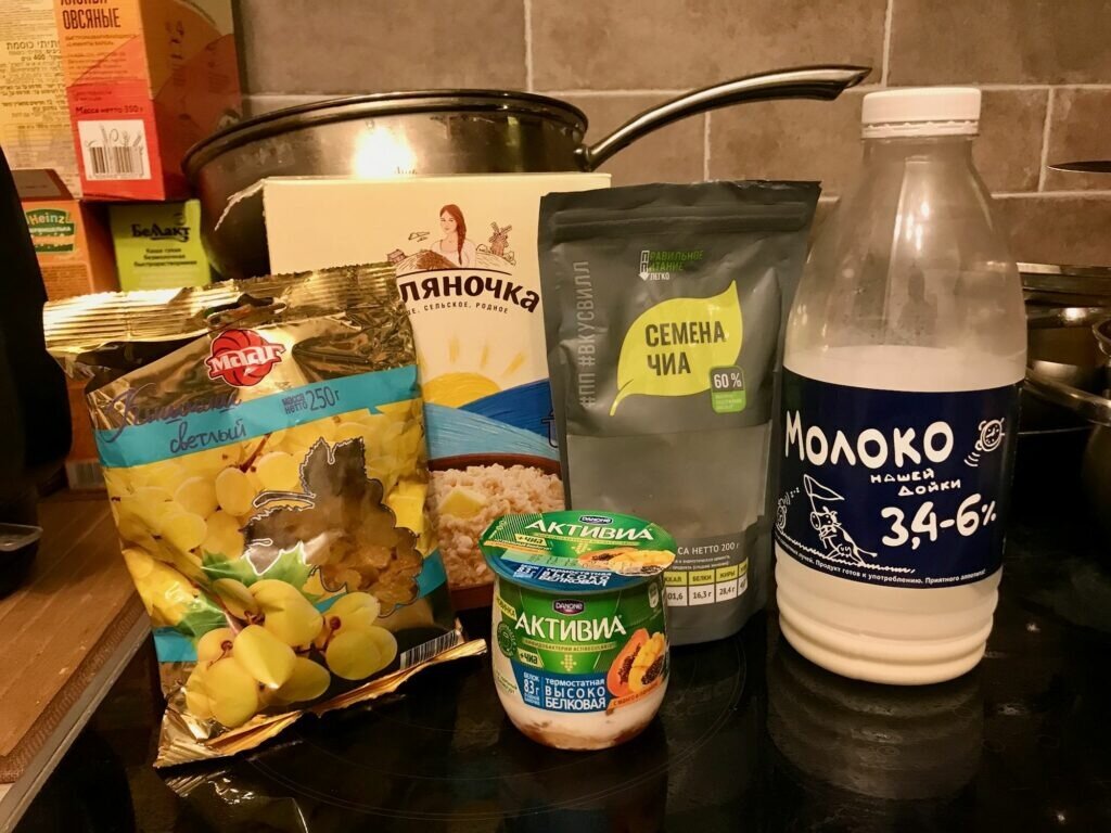 Овсянка без варки с йогуртом, изюмом и семянами чиа