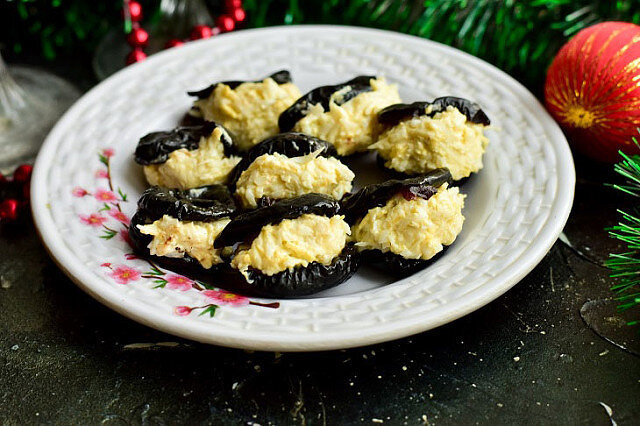 Мидии из чернослива" В канун новогодних праздников всегда хочется приготовить что-то оригинальное и необычное, чтобы удивить и вызвать настоящий фурор у всех пригашенных гостей. Так как закуски – это первостепенные блюда на праздниках, именно на одном рецепте стоит остановиться подробнее. Эта закуска называется мидии из чернослива. Готовится она очень просто и быстро!В качестве начинки следует остановиться на вареных куриных яйцах и сыре копченом колбасном, однако, к ним смело можно добавить еще и крабовые палочки. Также уместным будет добавление половинки грецкого орешка, так закуска по вкусу будет более необычной. Ингредиенты: Чернослив – несколько штук. Яйцо – 1 шт. Сыр колбасный копченый – 30 г. Майонез с наибольшим процентом жирности – 20 г. Приготовление: 1. Куриное яйцо положить в миску или кастрюлю, залить его горячей водой и поставить на огонь. Варить яйцо 10 минут. Затем остудить его полностью и очистить. 2. На мелкой терке натереть яйцо. Можно его нарезать очень мелко или