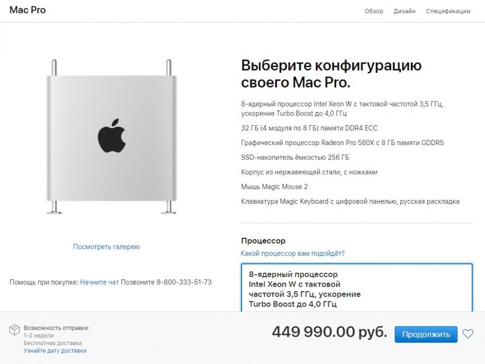 В США он стоит от 5999 до 52599 долларов (от 370 тысяч до 3,24 миллиона рублей), а в нашей стране цены ожидаемо оказались намного выше. В базовую модификацию Mac Pro включены 8-ядерный процессор Intel Xeon, видеокарта Radeon Pro 580X, 32 ГБ оперативной памяти и 256-гигабайтный SSD-накопитель. Дальше идут улучшения за дополнительные деньги.