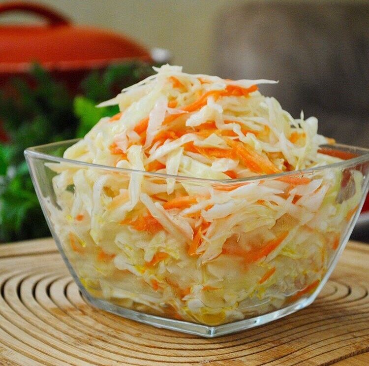 Быстрый рецепт приготовления вкусной маринованной капусты с морковью и уксусом ! Можно есть через несколько часов ! Вкуснейшая закуска из капусты ! Ингредиенты : капуста 1 кг морковь 1 кг чеснок 2 зубка вода 0.5 л соль 30 гр сахар 100 гр растительное масло 100 мл уксус 9% -100 мл лавровый лист перец чёрный горошком