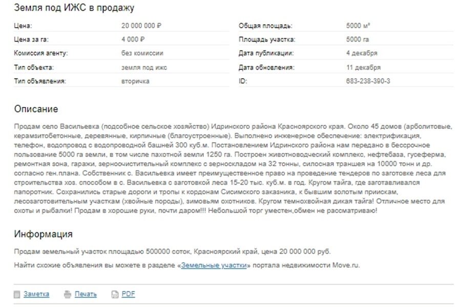 В Красноярском крае бизнесмен выставил на продажу село вместе с фермой, жилыми домами и людьми