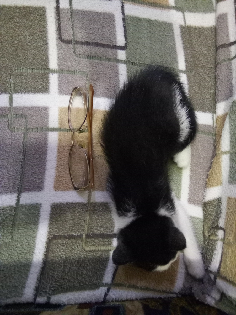 Вот такой маленький, 1,5 месяца. Завела себе котенка. У меня всегда были кошки, а вот последнее несколько лет, из-за того, что было неясно где я буду жить животин я не заводила. Позвонила по телефону, мне принесли котенка, и моя жизнь превратилась в ад. Оказывается, я всегда ладила с кошками. Это адское создание оказалось котом. Я хожу исцарапанная, он лезет на все столы, а когда устает - залезает на письменный стол и ложится мне на руки. Он так мирно спит, что если бы я не знала, как он себя ведет на самом деле, я бы подумала, какой милый котик! Такой маленький, беззащитный! Этот мерзкий пацан разнюхал где стоит мусорное ведро, успешно его освоил, и я уже раз застукала, как он вытащил из пакета куриную косточку и с рычанием её грыз! Я вспомнила, что коты лазят по шторам. Вспомнила, что за ними надо убирать туалет. К слову, эта пакостная животина оказалась умна не по годам. Он один раз наложил кучку на коврик в прихожей. А сейчас ходит постоянно в туалет в свой лоток. Единственное,