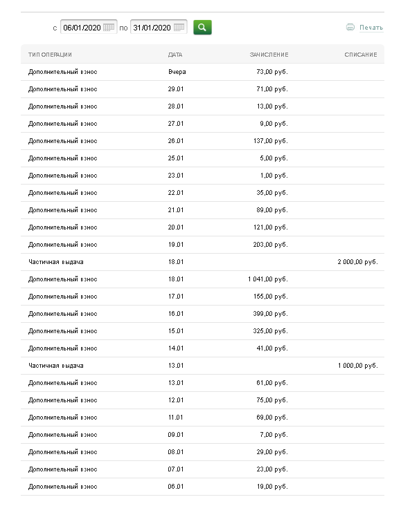Всем доброго времени суток. В связи с неожиданной болезнью не мог писать статьи, однако деньги откладывал ежедневно, поэтому привожу таблицу как все происходило: Таблица накоплений выглядит так: Баланс сместился в левую сторону, но будем учитывать праздники и отсутствие зарплаты в связи с болезнью... Сумма на банковском счете: 790,02 рублей 2 копейки начисленных процентов!!! Дважды пополнял ПИФ на 1000 рублей 13.01.2020 г. и на 2000 рублей 18.01.2020 г. Портфель выглядит следующим образом: Таблица учета ПИФов: Видно, что ПИФ верно движется вверх, и убыток от комиссий почти покрыт! Спасибо, что дочитали статью до конца!