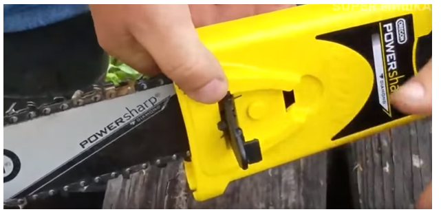 Если дома имеется бензопила, обязательно необходимо присмотреть точилку. Она компактно выглядит и не займет много места дома. Продукция представляет собой две пластины, которые надеваются на цепь. Необходимо закрыть конструкцию и произвести запуск пилы.