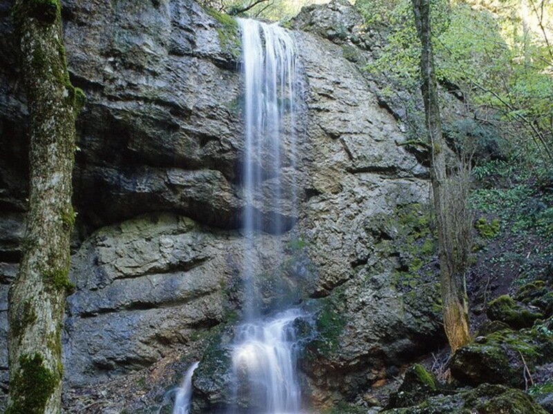 Это один из наиболее красивых водопадов Крыма, но, в тоже время, малопосещаемых. Он затерялся недалеко от истока одноимённой горной речушки в скальном разломе к юго-западу от села Богатое ущелье Бахчисарайского района, расположенного в предгорье западной части Бельбекской долины. Речка, или скорее ручей, Суаткан является левым притоком реки Бельбек. Исток Суаткана начинается на южном склоне горы Кая Баш или Два Татарина, а устье – через 11 километров у села Голубинка. Название водопада в переводе с крымскотатарского языка означает «выбрасывающий воду». Есть и другие трактовки этого названия: Суат-Хан (в переводе - "вода", "голова", "владыка", т.е. "верховье воды владыки" или "истоки владыки"). Водопад Суаткан относится к эфемерным (от греческого однодневный) водопадам и посмотреть его во всей красе можно лишь ранней весной, когда лесные ручьи и речки наполняются талыми водами и с весёлым шумом несутся в долины через пробуждающиеся от зимней спячки леса. Добраться до водопада, пр