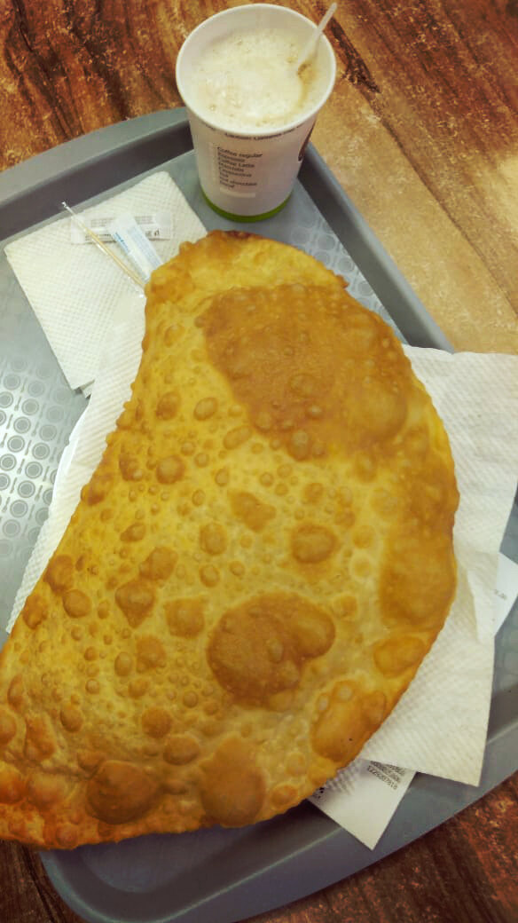 Такой огромный чебурек я впервые попробовала в Питере несколько лет назад. Теперь и у нас продают чебуреки по-крымски. Очень вкусно! Сразу ностальгия по Питеру нахлынула.