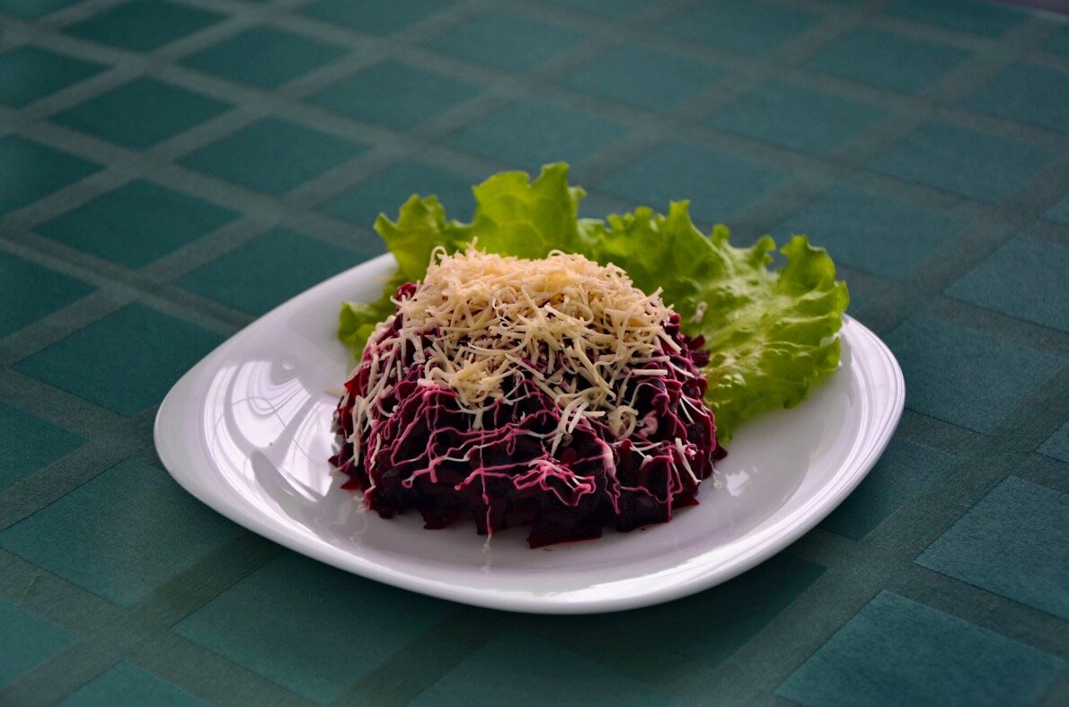 Ингредиенты: · Свекла - 300 г · Яйцо - 2 шт. · Сыр - 80 г · Натуральный йогурт - 3 ст. л · Чеснок - по вкусу · Соль, перец - по вкусу Приготовление: Очищенную отварную свеклу нарезаем небольшими кубиками и кладем в салатник. Сыр и очищенные яйца режем также небольшими кубиками. Добавляем их в салатник к свекле. Солим салат, заправляем йогуртом, приправляем пряностями по вкусу. Перемешиваем салат. Подавать правильную вкуснятину можно сразу же после приготовления. Украсить при подаче тертым сыром, консервированным горошком или кукурузой, свежей зеленью. Можно сделать вот такую новогоднюю подачу салата. Приятного Аппетита! Подписывайтесь на наш канал Мы будем делиться вкусными и полезными рецептами