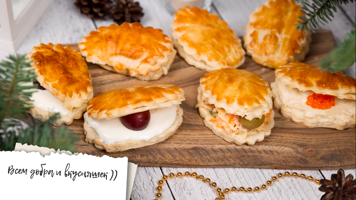 Сегодня довольно оригинальная, а самое главное - УНИВЕРСАЛЬНАЯ закуска на праздничный стол. Будем делать морские раковины. О как!)) Готовить их проще простого (а кто б сомневался?) Все, что нам понадобится: Тесто даже не раскатываем. Немного разморозили и при помощи формочки вырезаем круги. Точнее, не совсем круги, потому что один край должен быть немного срезан, чтобы по форме это было похоже на морские раковины. Затем или тупой стороной ножа, или другим подходящим предметом делаем борозы в виде солнечных лучей. До конца не разрезаем, просто надавливаем. Обрезанный край придавливаем пальцами. По идее, тогда он не поднимется, но у меня не прокатило. Хз почему)) Смазываем поверхность яйцом и отправляем в разогретую до 200 градусов духовку на 10-15 минут. До готовности и золотистости. Как запекутся - разрезаем раковины почти до конца и можно наполнять любыми начинками по вкусу. Вот вам три идеи для затравки)) НАЧИНКА ИЗ КОЛБАСНО-СЫРНО-КОРНИШОННО-МОРКОВОГОГО САЛАТА