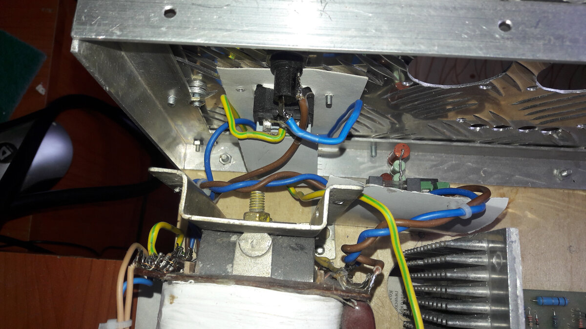 Желание сделать именно такой усилитель для домашнего использования возникло довольно давно, не��колько лет назад. Толчком послужила серия статей на сайте Датагор И.Котова www.datagor.ru. Основной побудительный мотив для творчества подобного рода — сделать самому и через это выразить свое я. Отзывы о QUAD-405 подтолкнули к изучению вопроса о самом усилителе, после чего вспомнился и усилитель Солнцева, созданный автором во времена моей молодости на отечественной элементной базе и не доступный для изготовления в то время по разным причинам. После всего комплекса нахлынувших эмоций решение было принято и довольно быстро были изготовлены печатные платы для двух каналов. На том же Датагоре заказал набор деталей для сборки (просчитывал — покупка рассыпухи с доставкой до дома мне вышло бы дороже на 30%). Полученные детали были распаяны и … проект лег в долгий ящик на несколько лет. Очень уже проблематично оказалось заниматься несколькими делами сразу и с материальной точки зрения и со временем значительные нелады были. В этом году в связи с уходом на пенсию времени стало побольше и проект был доделан. Итак — к основному.Описание проекта (все схемы, печатные платы и что-то, относящееся к вопросу лежит на Яндекс диске — yadi.sk/d/djcvd07_P0uqnQ ):1. На сетевом разъеме расположил фильтр от компьютерного блока питания. При желании можно заказать у наших узкоглазых партнеров разъем со встроенным фильтром.2. Предусмотрен софт-старт блока питания усилителя. Описание примененной схемы здесь — cxem.net/sound/amps/amp158.php.3. Трансформатор ТС-250. Вторичные обмотки смотаны и намотаны новые — 2*36 вольт и 2*15 вольт. В этом месте допустил большой косяк — не предусмотрел полностью, что еще будет в усилителе питаться. Это привело к включению в конструкцию нескольких преобразователей напряжения. Качество звука в моем понимании не изменилось, но все таки такой подход «кошерным» не является.4. Блок питания двуполярный нестабилизированный, напряжение на выходе 2*50 вольт, в каждом плече конденсаторы фильтра 3*4700 мкф. Диоды SF56.5. Для питания предварительного усилителя блок питания стабилизированный на LM317 и LM337.6. Впомогательные напряжения 26 вольт для питания платы защиты акустики и 12 вольт для селектора входов и вентиляторов охлаждения получены от двух преобразователей напряжения aliexpress.ru/item/327677…042311.0.0.264d33edwDKr2b.7. Для защиты акустики применена схема А.Котова akotov.narod.ru/6.html.8. Селектор входов от наших узкоглазых партнеров aliexpress.ru/item/328261…042311.0.0.264d33edLVSvII. Брал набор для самостоятельной сборки — он немного дешевле, да и подымить паяльником в радость. Внешний вид слегка отличался в лучшую сторону :) . В качестве переключателя использовали более приличное изделие в закрытом исполнении на 4 положения и 3 направления. Свободные группы контактов я использовал для индикации включенного входа.9. Сам усилитель мощности собран по статье Константина (ака Gutman) datagor.ru/amplifiers/sol…-405-2-nasha-versiya.html. Платы изготовил самостоятельно. Можно и ЛУТом — особо мелких дорожек там нет. Я делал фоторезистом и даже поупражнялся с паяльной маской. Получилось довольно неплохо. Детали заказал на сайте datagor.ru/amplifiers/sol…uad-priehalo-ura-ura.html, повторю для меня это было дешевле и проще. Качество деталей оказалось на высоте. Катушки заказывал в ЧИПиДИПе, но одну перемотал самостоятельно. Радиатор игольчатый 110х269х21мм.10. Предварительный усилите