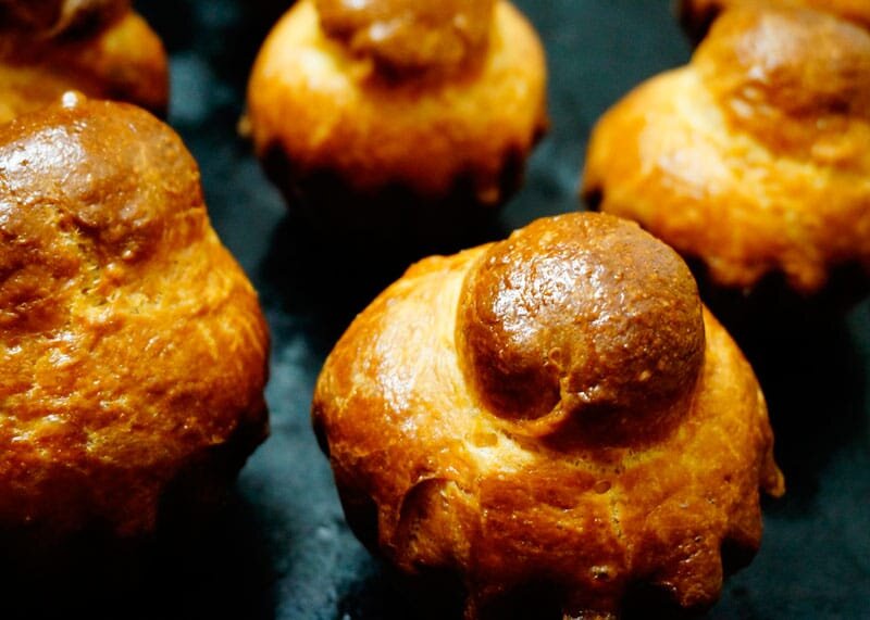 Нам понадобиться Приготовление Шаг 1 Приготовим тесто для бриошей. В миску миксера просеиваем 700 граммов муки, добавляем 1 столовую ложку соли, 80 граммов сахара, 1,5 столовые ложки сухих дрожжей, перемешиваем. Шаг 2 В отдельной посуде смешиваем 6 холодных яиц с 60 миллилитрами ледяной воды. Вливаем смесь яиц с водой в муку и в течение 7 минут, на малой скорости, замешиваем тесто. Шаг 3 В это время, скалкой разбиваем 250 граммов очень холодного сливочного масла до мягкости. Шаг 4 Разбитое холодное масло небольшими кусочками, не прекращая замешивать, добавляем в тесто. Вымешиваем тесто еще 10 минут. Готовое тесто накрываем пищевой пленкой и оставляем при комнатной температуре на 1 час. Шаг 5 Через час, обмакивая руки в муку, аккуратно, выкладываем тесто на стол. Обмакивая руки в муку, загибаем с каждой стороны третью часть теста к середине, сметая кисточкой излишки муки. Шаг 6 Возвращаем тесто в миску швом вниз, накрываем пищевой пленкой и ставим миску с тестом в холодильник минимум на