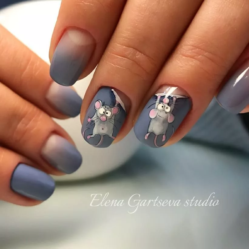 На носу 2020-й! Год Белой Металлической Крысы! 🎄 🐁 Она вступит в силу 25-го января и, по восточным верованиям, в этот год можно добиться невероятных успехов в сопутствии со зверьком, а значит и встретить его надо по всем правилам! И всё, вплоть до маникюра, будет соответствовать Новогоднему Символу! Итак, идеи, которые вы можете заказать у своего мастера! Матовый маникюр с изображением зверька