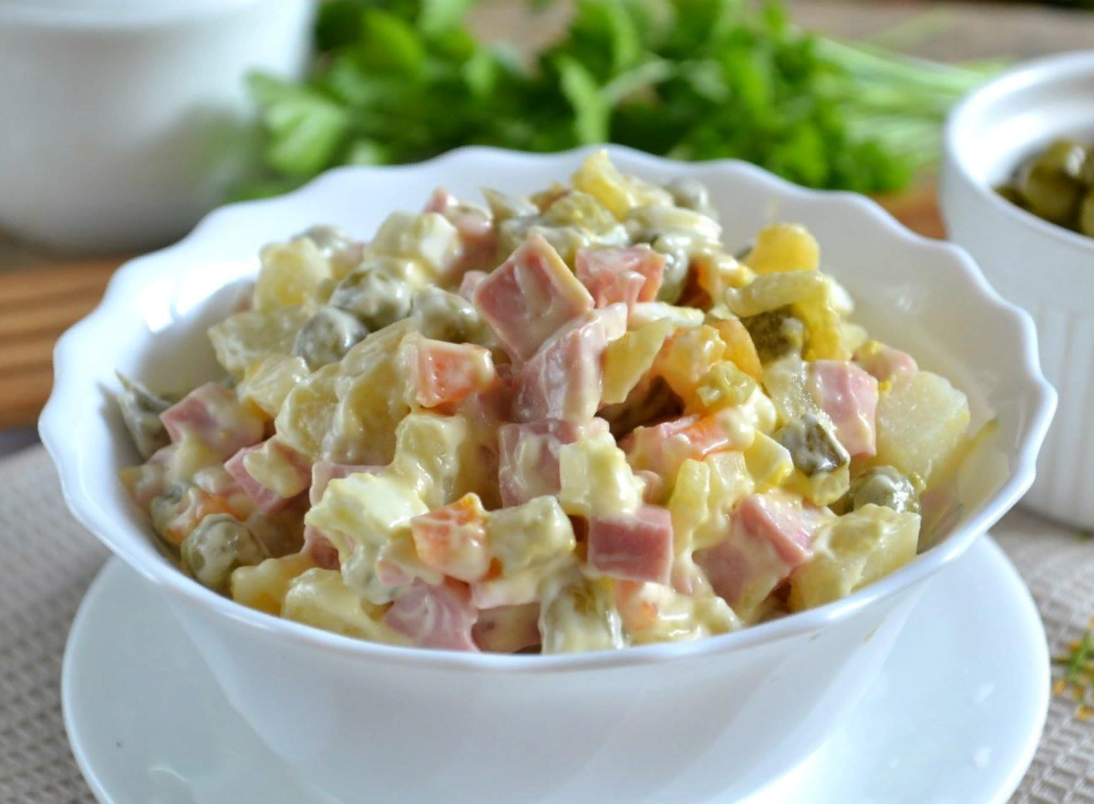 Согласитесь, что салат «Оливье» давно стал у нас полноправным символом встречи Нового года наряду с елкой и «Иронией судьбы» Эльдара Рязанова. Но если о появлении традиции наряжать лесную красавицу и о перипетиях создания популярнейшей новогодней кинокомедии известно все или почти все, то о любимом салате мы знаем только то, что он носит имя придумавшего его кулинара — французского повара месье Оливье. И вряд ли кому-то известно, что салат «Оливье» появился на наших праздничных столах благодаря ошибке своего прародителя… Рецепт этого необычного кушанья Люсьен Оливье придумал для тонких ценителей хорошей кухни: в центре ломтики нежирного филе рябчика, телячий язык, вокруг картофельный салат с икрой, пикантными крошечными корнишончиками, каперсами и нарезанным кубиками желе из бульона, для украшения — кружочки крутых яиц, а для особой пикантности — раковые шейки под соусом провансаль. Полюбивший Россию Оливье научился широко использовать в своих кулинарных фантазиях ее вкусные богатс