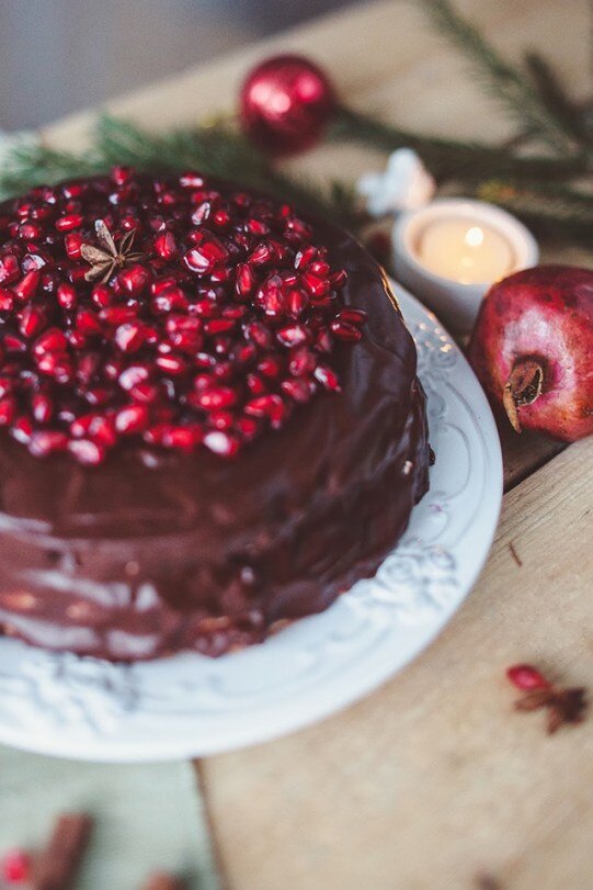 Сегодня у нас для вас очень зимний и немного новогодний рецепт. Дарья Ганихина порадовала нас таким благородным, можно даже сказать монументальным, тортом. Если украсить его гранатовыми зернышками, получается прекрасное украшение новогоднего торта. Пока до Нового года есть время, поэкспериментируйте, и начинайте год с вкусной и красивой сладости! Ингредиенты: Способ приготовления: 1. Отделить яичные желтки от белков. Шесть желтков взбить с 75 граммами сахарного песка в пышный светлый крем, а белки взбить сначала до плотной консистенции, затем добавить 75 грамм сахара и продолжать взбивать до пышности. 2. Смешать белковую и желтковую массы, всыпать муку, просеянную с 25 граммами какао, тщательно перемешать. 3. Влить в тесто 40 грамм растопленного сливочного масла, охлажденного до температуры 28–30 градусов, перемешать и вылить готовую массу в смазанную маслом и присыпанную мукой форму диаметром около 23 см. Печь в духовке, разогретой до 200 градусов, полчаса.4. Готовый бисквит остудит