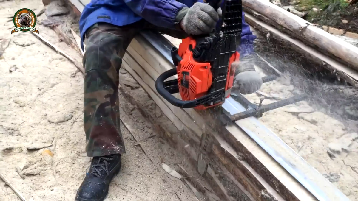 На второй день мы решили, что Евгений Иванович займётся распилом досок на пол, а я буду застилать потолок мхом, чтобы тепло от печи не уходило через щели в потолке.