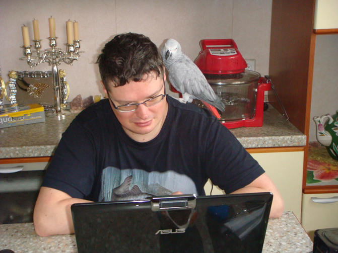 Где-то ближе концу четвёртого месяца нашей совместной жизни я пересёкся на «Птичке» с продавщицей. Пока мы разговаривали, подошла ещё одна покупательница и начала практически взахлёб рассказывать, какого хорошего она попугайчика-жако купила, и как он уже и ест из рук, и на руки идёт, и на плечо уже садится, а ведь прошло всего недели три!