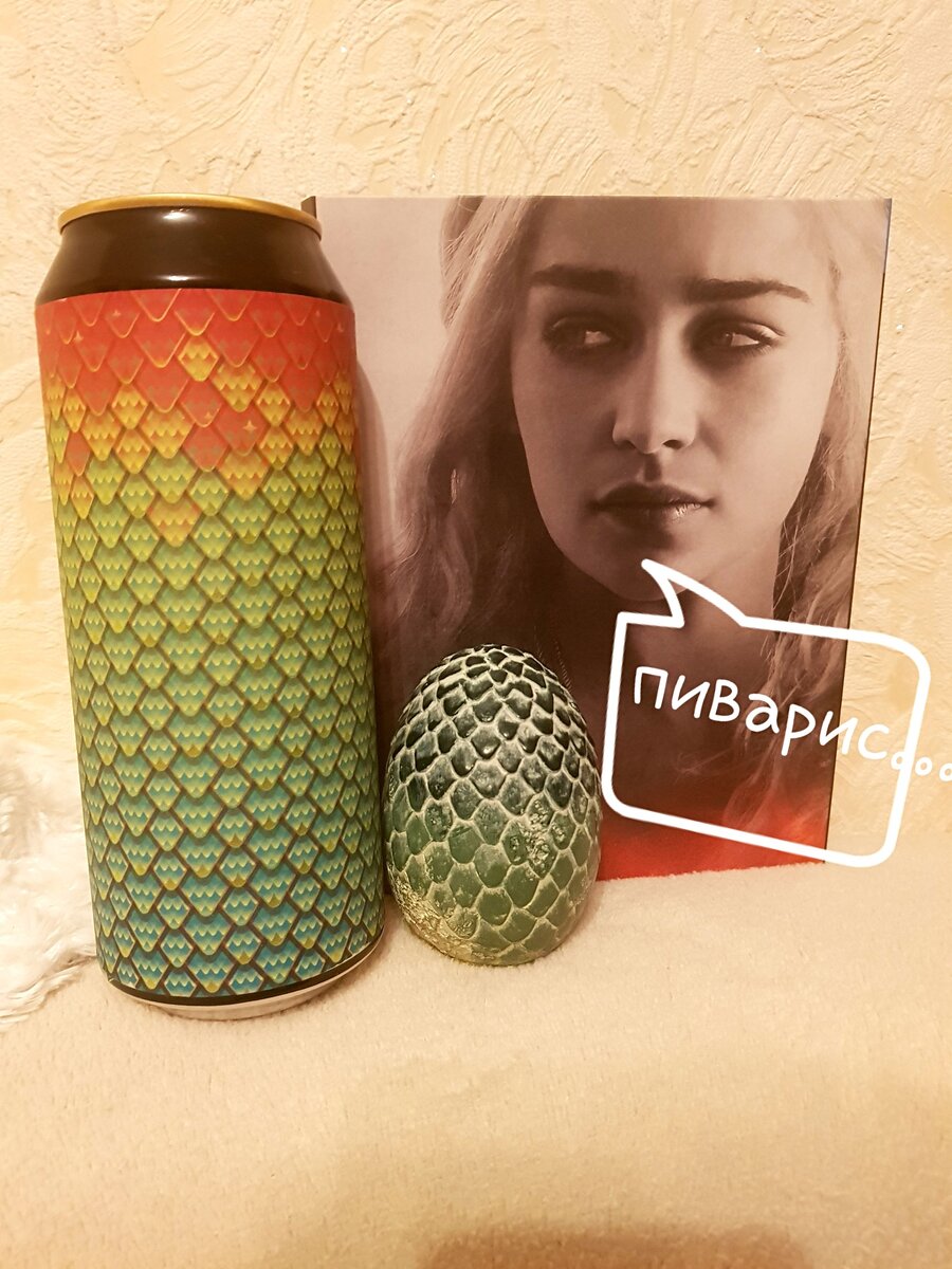 Являясь в свое время любителем популярного сериала не мог не взять баночку кислого эля Daenerys с добавлением манго, гуавы и маракуйи. К этому способствовало еще и то, что пиво является самым высокорейтинговым сортом пивоварни по версии Untappd. Первое что реально цепляет это этикетка, выполненная в стилизованной чешуе дракона. Красочная, шероховатая на ощупь с переливами на свету действительно делает банку драконовой. Даже подставил к ней яйцо из сериала, в общем дизайн очень крут. Наливаем! Аромат легкий, кисло-сладкие ноты заявленных фруктов перекликаются, оставляя приятное впечатление. Вкус продолжает аромат, и он чертовски хорош! Мультифруктовость захватывает все рецепторы, раскрывая отличный баланс кисло-сладости плотного, тропического тела. Насыщенный, питкий, в какой-то степени нектарный эль с отсутствием какой-либо «химозности» фруктов. Не смог выделить во вкусе конкретный фрукт, но показалось что больше солирует манго. О том, что это пиво напоминало только горчинка в после