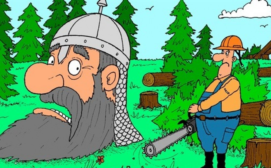 Анекдот: В Норвегии проходит состязание лесорубов, всё здоровые мужики, но побеждает маленький чернокожий с топориком