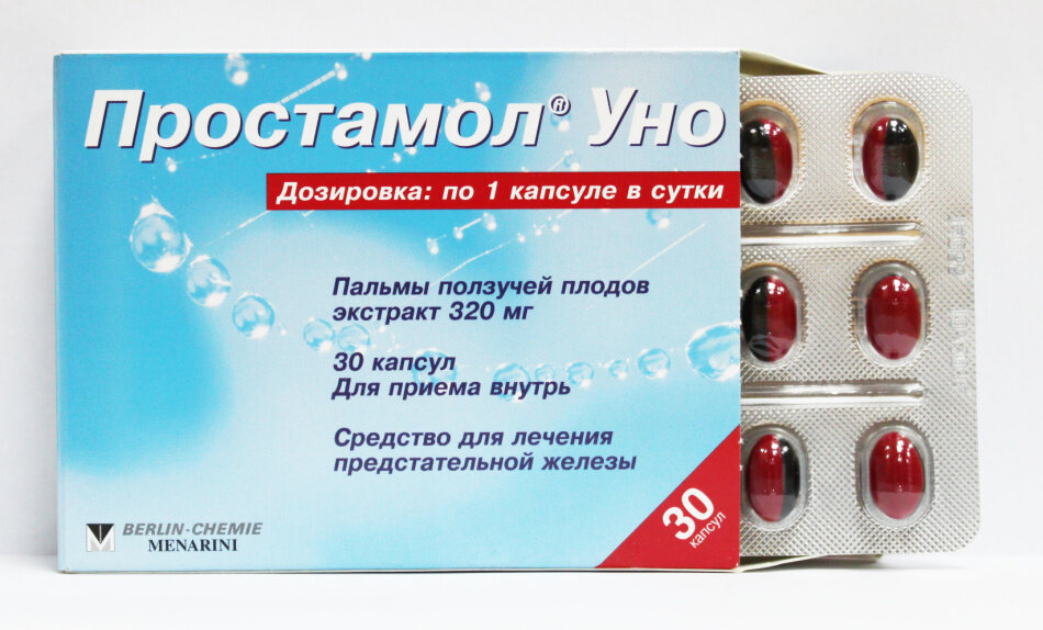 В состав таблеток Простамол уно входит экстракт из плодов пальмы пилообразной. Данное растение обладает свойствами, которые замедляют разрастание тканей предстательной железы, уменьшают воспалительные процессы и обладают противоотечным действием. Все это приводит к значительному снижению выраженности симптомов гиперплазии предстательной железы (струя мочи слабая прерывающаяся; частые болезненные мочеиспускания, особенно ночью; отсутствие чувства опорожненного мочевого пузыря после них). Показания Препарат назначают для лечения хронической формы простатита, нарушениях мочеиспускания, а также I–II стадии гиперплазии предстательной железы, протекающей в добро качественной форме. Простамол применение Принимать данное средство следует каждый день в одно и то же время после приема пищи по 1 капсуле. Капсулу нужно проглатывать не разжевывая, запить большим объемом воды. Длительность лечения зависит от тяжести и вида заболевания, может быть беспрерывной. Улучшение состояния обычно наступает