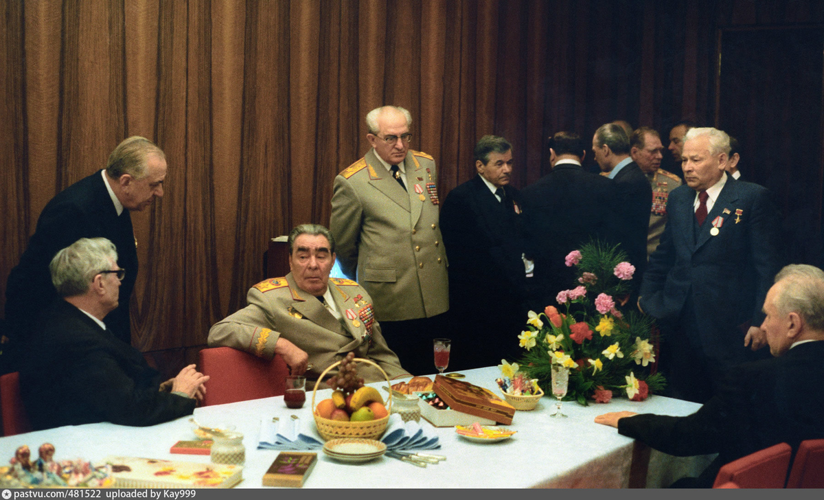 Леонид Ильич, чесал затылок, хмурил брови, пытаясь, что то вспомнить. Обращается с вопросом к председателю КГБ, товарищу Андропову.
