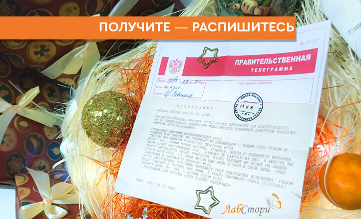 Наверное, многие уже забыли, как выглядит настоящая телеграмма. Мы всем коллективом «ЛабСтори» не только вспомнили о таком способе письма, так еще и получили ее по почте. Особенно приятно было получить не просто адресную, а Правительственную телеграмму! Мы очень рады, что компания «ЛабСтори» удостаивается не только наград, но и таких приятных поздравлений. Это так душевно и по-человечески.