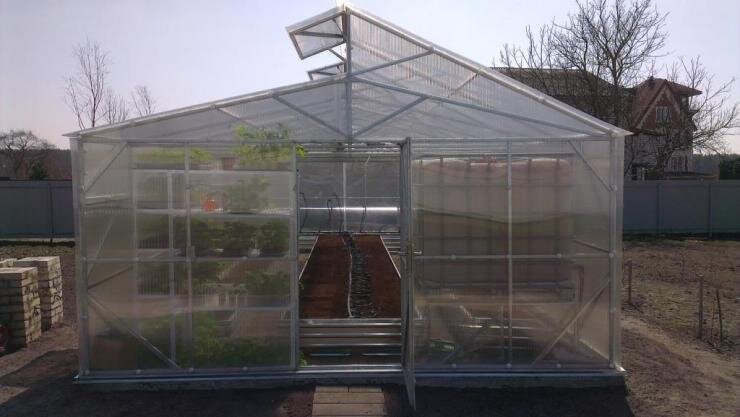 - В комплексе с вертикальной подконьковой стенкой получилась идеальная вытяжная труба длиной во всю теплицу.