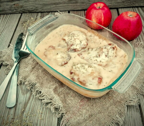 Оригинальное "горячее" на Новый Год (тем, Дорогие мои друзья и коллеги! Я помню вашу просьбу о том, чтобы написать рецепты новогодних горячих (и не только) блюд, которые смогут приготовить работающие допоздна (31 декабря) женщины. Очень рекомендую обратить ваше внимание на это блюдо, так как оно неоднократно меня выручало в форс-мажорных ситуациях, и которое актуально еще и потому, что прекрасно сочетается с любым гарниром (от картофеля, пасты и риса до гречки), оно отлично себя чувствует с "таком", т.е. вообще без гарнира, и (самое главное), оно бюджетно, а продукты для него на 100% есть у каждой хозяйки в холодильнике. Предлагаю приготовить невероятное блюдо из свинины под нежным яблочным кремом! За "базу" я взяла известное немецкое блюдо, но немного его переделала под наши реалии и собственный вкус. Вы тоже можете фантазировать, ибо с творчеством у нас у всех (как я убедилась по комментариям) - полный порядок! Из базового рецепта я убрала корень петрушки (у меня его никогда нет, и