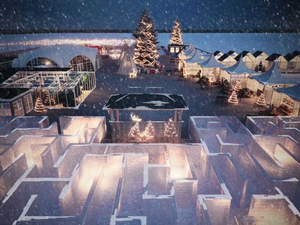 Кроме того, в парке установили большой лабиринт с детской площадкой и 10-метровую новогоднюю елку. Посетителям предлагают и другие развлечения: от ужина в панорамном