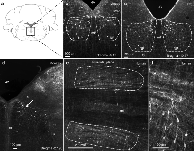 Ученые из Фрайбургского университета обнаружили ядро (совокупность нейронов), которое избирательно запускает быстрые движения глазами в быстрой фазе сна. Как выяснилось, оно находится в продолговатом мозге и имеет проекции («тянет» свои аксоны) в ядра глазодвигательных нервов. Описанию особенностей его работы и тому, как именно оно контролирует парадоксальный сон, посвящена статья в журнале Nature Communications. Нейроны Nucleus papilio в продолговатом мозге. Credit: Gutierrez Herrera et al. / Nature Communications 2019 Во время фазы быстрого сна, отрытой в 50-х годах прошлого века Натаниэлем Клейтманом и Юджином Азерински, мышечный тонус минимален. Тем не менее по непонятным причинам это правило не распространяется на мышцы глазных яблок, которые начинают сокращаться и двигать глаза под закрытыми веками. Собственно, это явление и дало название фазе сна – REM или rapid eye movement. Долгое время оставалось непонятным, что именно опосредует эти движения и как они влияют на сам быстрый