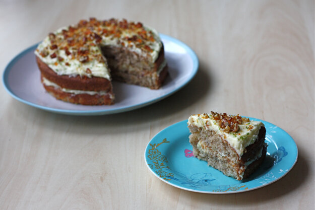Предлагаю рецепт простого и вкусного торта, а главное очень необычного. Это легендарный ямайский десерт, очень популярный в Америке с 60-х годов. Рецепт десерта во многом отличается от остальных тортов. Готовить его совсем не сложно, тем более, что вам даже не понадобится миксер или кухонный комбайн для замешивания теста, достаточно перемешать все компоненты лопаткой. Рецепт бисквитных коржей для торта, очень простой, а еще в нем используется не привычное для нас сливочное масло, а растительное, что делает его влажным, пористым и сочным, поэтому совсем не требуется дополнительная пропитка сиропом. Бисквит с консервированным ананасами, корицей и бананом придают торту еще больше аромата пряностей и фруктовой свежести. Также вы увидите, рецепт творожного крема для бисквитного торта, который быстро и просто готовиться, а на вкус просто отличный и идеально дополняет данный десерт. Если же такой крем вам не подходит, то его можно заменить сметанным, сливочным или на сгущенном молоке. У нас