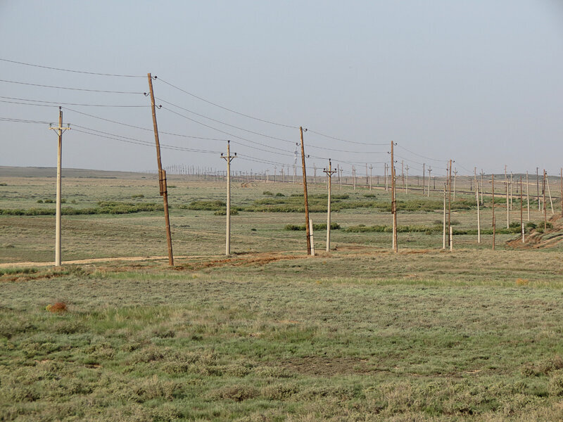 За Жезказган уходит Новый Шёлковый путь в сторону Ирана. Но рудники он оставляет позади - к ним ведут сугубо грузовые ветки, в основном проходящие через городок Сатпаев: