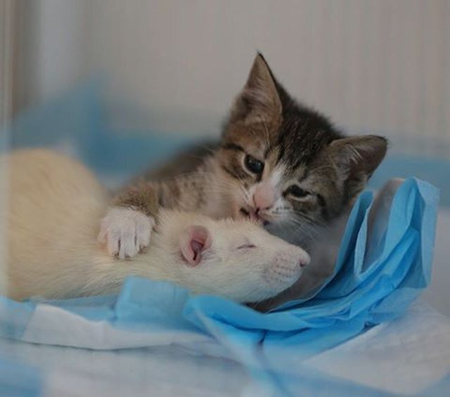 Да, всякое случается на белом свете. Все мы привыкли считать, что кошки и грызуны (мыши и крысы), мягко говоря, не слишком дружны между собой. Мышка убегает, кошка догоняет. Однако известны и многочисленные случаи так называемой межвидовой дружбы. Так, до сих пор на памяти трогательная дружба тигра Амура и козла Тимура. Интернет полон забавными роликами, рассказывающими о нежных отношениях кошек и собак. Трудно поверить, но иногда находят общий язык и крысы с кошками. Перенесемся в Соединенные Штаты, Нью-Йорк, в котокафе Brooklyn Cat Cafe. Мы уже неоднократно отмечали в своих публикациях, что в каждом таком заведении имеется своя собственная «фишка», «изюминка», привлекающая посетителей и делающая кафе в своем роде уникальным. Иногда по-настоящему креативные идеи продумываются годами, иногда все происходит само собой. Все началось четыре года назад, когда в один из приютов попал больной кошачьей лейкемией котенок по кличке Эбони (Ebony). Заболевание опасное, поэтому персонал приюта не