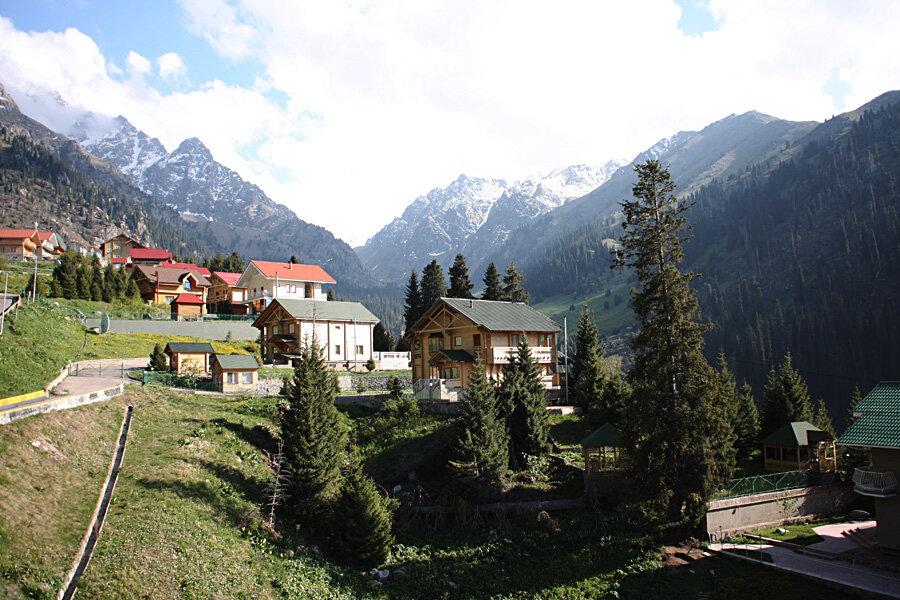 Мой ответ - да. Если точнее, я имею ввиду стоит заехать, стоит включить в программу своего путешествия по Казахстану. Даже если вы ни разу не горнолыжник (правда и несезон летом). И даже, если вы не занимаетесь горным треккингом, вам будет где прогуляться и что посмотреть. А доставит вас на высоту удобная гондола канатной дороги. И первое, что вы увидите при подъеме, это высокогорный стадион Медео. Кстати автобусная остановка у нижней станции канатки тоже называется Медео и сюда можно добраться из Алма-Аты автобусом №12. А для автомобилей имеется парковка. Взрослый билет на канатку стоит 3500 тенге (нашими менее 650 рублей). Виды весьма приятные. На высоте 2800 средняя станция, где необходимо пересесть на линию до верхней площадки. Кабинки на верхнюю площадку, на отметку 3200м. С детьми, пожалуй, удобней гулять на площадке 2800. Традиционное фото с орлом. Цены в ресторанах, сразу скажу, - кусаются. Особенно на фоне бюджетных цен в среднем по Казахстану. Лучше просто погулять полюбоват