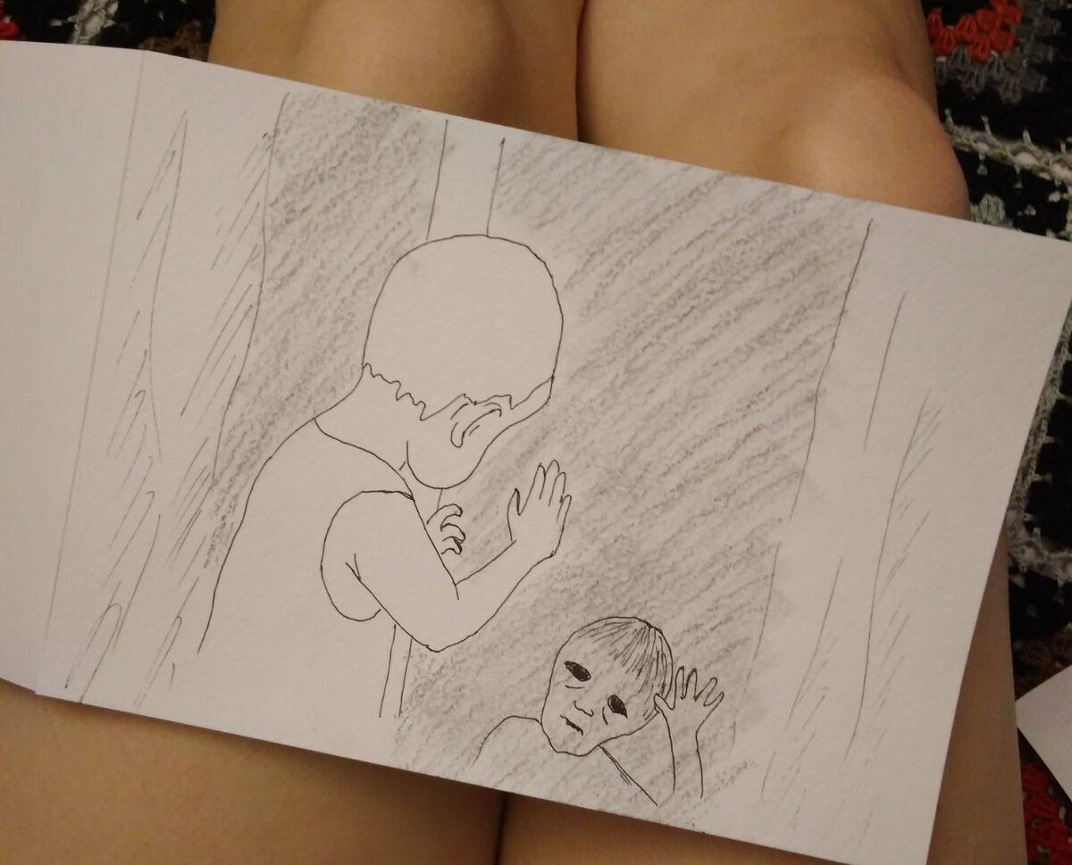 Смотрела на оконыжку, думала, что-то своё, а тот первый раз увидал близко чистенькую и белёхонькую девочку, такую, что словно сейчас в рай. Волосы с чёлочкой, носочек сама надела один на ножку-крохотульку. Ушки как сахарок. Красавица! Глазками моргает, а оконыжка, зачарованный эдакой красотой, сквозь стекло к ней потянулся. Лапка у него худенькая, костлявая, рожица страшная, губ нет, глаза мутные, сам багровый… а девочка к нему, а стеклышко между ними, никак не достать ляльку заоконную. Захныкала, на мамку оглядывается, а та спит.
