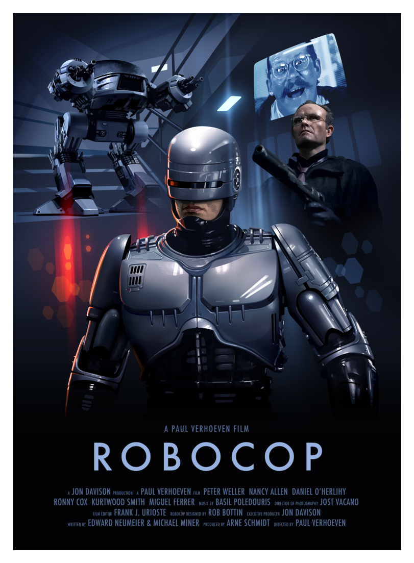 Всем привет! Это Неоновый Герой, и здесь я разбираю различные книги по боевикам эпохи VHS. Сегодня речь пойдёт о боевике 1987 года "Робокоп". Фильм режиссёра Пола Верховена ( который, поначалу Верховен не хотел режиссировать) совершил технологическую революцию в кинематографе не меньше, чем "Терминатор". Спецэффекты поражают и спустя более 30 лет. "Робокоп" помимо технологических спецэффектов был в своё время раскритикован за чрезмерно жестокие сцены (вроде убийства главного героя Алекса Мёрфи или неудачной демонстрации робота ED-209), из-за чего Верховену пришлось вырезать часть особенно жестоких кадров. Кроме того, в фильме присутствует тонкая сатира на американское потребительское общество тех лет, которое, впрочем, актуально и сегодня. Напоминаю сюжет первого оригинального "Робокопа". Детройт, недалёкое будущее. Корпорация Оу Си Пи, для строительства сверхтехнологичного города Дельта-Сити и введению монополии на все дела в городе, вводит программу "Робокоп", с целью прекратить ро