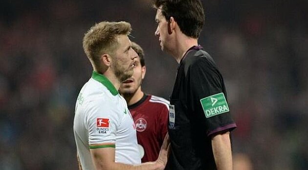 Полузащитник бременского «Вердера» своим примером показал, что благородство превалирует над победой, добытой любой ценой: немец ворвался в штрафную соперника, столкнулся с защитником, после чего арбитр незамедлительно указал на точку, хотя всеми правдами и неправдами футболисты «Нюрнберга» убеждали рефери в отсутствии нарушения.