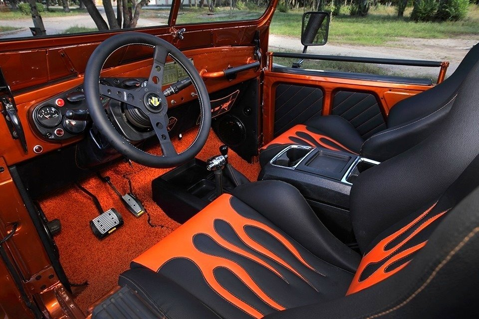 Советский автомобиль получил яркую окраску кузова и не менее «огненный» салон. Народные умельцы часто дают жизнь «мёртвым» забытым автомобилям, которые ничем не примечательны. Один из энтузиастов представил интересный проект на базе ГАЗ-69 1957 года выпуска. Техническую «начинку» машина получила от Isuzu Trooper 2000 года – в моторном отсеке советского авто расположился 3,5-литровый двигатель V6, работающий в паре с автоматической трансмиссией. Целью проекта было создать ГАЗ-69 с максимально аутентичной и яркой внешностью, пишет пользователь «Драйва» FlyingArmbar. Переработан был и салон – с таким ярким оформлением модель и не узнать. Несмотря, на все переделки, машина полностью сохранила свои внедорожные характеристики – «раздатка» пониженным рядом трансмиссии, высокий дорожный просвет и полный привод. На восстановительные работы у умельца ушло целых три года. Автор проекта признаётся, что уделял внимание каждой мелочи, чтобы довести автомобиль до идеала. В итоге ему удалось постави
