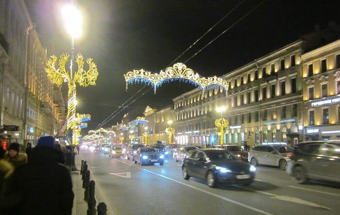 Эта статья написана для тех, кто, по разным причинам не был или не будет вечером в Новогодние праздники в центре Петербурга. Точнее, это не статья, а фоторепортаж, несколько фотографий вечернего Петербурга 29 декабря 2019 года: Невский проспект у станции метро Маяковская Мышиный король со своими подданными на Малой Садовой улице, возле Елисеевского магазина. Год крысы, однако... Гостиный Двор на Невском проспекте. Башня Городской Думы. А вот и Дед Мороз на электроскутере с маленькой собачкой в костюме снегурочки. Гирлянда переливается разноцветными огоньками, на багажнике - самовар с баранками. Казанский собор выглядит особенно необычно и празднично - на купол спроецировано изображение иконы Казанской Божьей Матери: На улице Малой Конюшенной новогодний пряничный домик. Ну, так он выглядит. Подписывайтесь на наш канал! В эти праздники мы гуляем по Петербургу.
