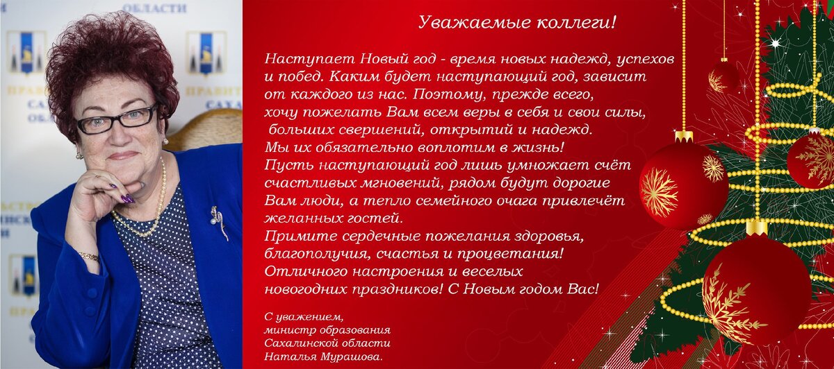 Поздравление министра образования Сахалинской области Н.А. Мурашовой С Новым годом!
